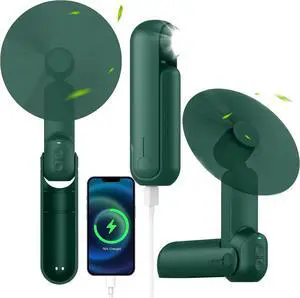 4 IN 1 Portable Mini Handheld Fan,Personal Foldable Cooling Travel Fan, Pocket Hand Fan for Face Lash,Desk Fan,Flashlight,Summer Concerts Camping, Birthday Gifts for Women Mom (Dark green)