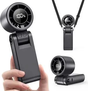 Portable Handheld Turbo Fan with Ice Cooling, 5 Speed Battery Rechargeable Foldable 3 in 1 Mini Fan, Neck & Desk Fan, Quiet Personal Fans for Outdoor, Travel, Camping, Hiking, Working(Black)