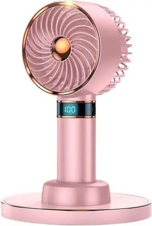 5-in-1 Portable Handheld Fan, Necklace Fan, Mini Desk Fan, Foldable Phone Stand, Emergency Backup Power, Quiet USB Rechargeable Personal Fans with LED Digital Screen (Pink)