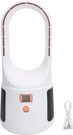 USB Desk Fan, Bladeless Cooling Fan with Power Display, 6 Speeds Quiet Portable Table Fan for Home Office Bedroom, Adjustable Wind Speed with Turbocharged Airflow, Energy Efficient (White)