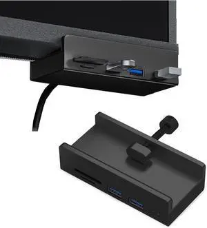 USB C Hub Clamp Aluminum 2-Port USB 3.0, USB C Data Port, SD/TF Card Reader for 0.39''-1.18'' Thickness Desktop PC, Desks,Monitor Stand Desktop Powered USB Hub and Cell Phone Holder (Black)