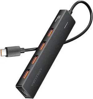 USB C Hub, 4-in-1 USBC to HDMI Splitter with 4K Display, 3×Powered USB-A 3.0 5Gbps Data Ports for MacBook Pro, MacBook Air, Dell and More