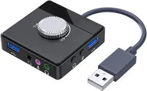 USB HUB with 3 Ports and External Sound Card to 3.5mm Jack Driver-Free Volume Adjustable Stereo Audio Adapter Compatible with Desktop PC and Laptop Models