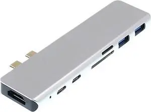 USB 3.1 TY>pe C Hub to HDMI Adapter 4K .0 TF SD Reader Slot PD for Air Pro M3 M2 M1 Chip(7 in 1 Silver)