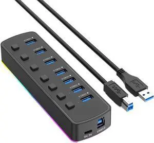 7 Ports USB 3.0 Hub 5Gbps Speed USB Splitter Adapter with Individual On Off Switch for PC Computer Accessories SSD RGB