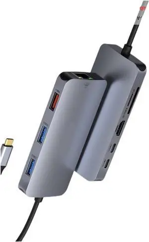 USB C Hub 9 in 1 Type C Multiport Adapter 1000m Ethernet Port 4K30Hz HDTV Port 3 USB 3.0 Port 100W Charging Dock