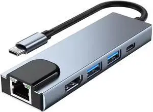 5-in-1 Type-C Hub, Type C to HDTV Adapter, RJ45 Ethernet, 4K HDTV, PD100W, USB 3.0, USB2.0 Compatible with Type C Devices with DP Alt Mode, Multi-Port Adapter, Docking Station