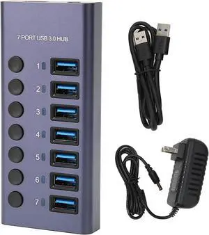 USB 3.0 Hub 7 Ports 5Gbps 5V 2.4A 36W Individual Switch LED Indicator USB 3.0 Docking Station for PC Phone