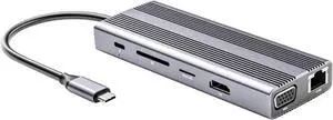 10 in 1 USB C Hub Multiport Adapter, USB Type C Hub with and HD Multimedia Interface, 100W PD Fast Charging, Aluminum Alloy Docking Station for, Laptop, PC, TV