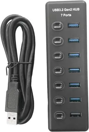 7 Port USB3.2 Gen2 HUB 10Gbps USB 3.0 Hub with Individual Switch Control LED Indicator with Power Adapter US Plug