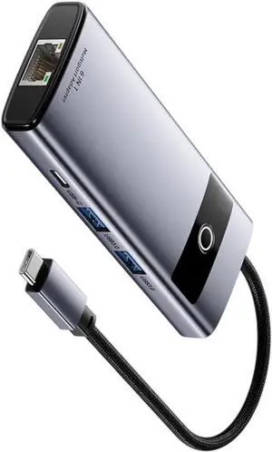 8 in 1 Hub Type C to RJ45 USB30. SD HDTV PD, Multifunction Laptop Hub, Compact Aluminum Alloy Adapter with 60W Fast Charging, Speed Data Transfer for
