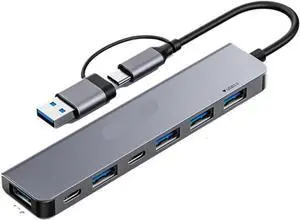 10 Ports USB HUB 7 USB-A and 3 USB-C Ports Multiport Adapter, USB3.0 Aluminum USB C to USB Hub for iPhone 16/15 Series, MacBook, iPad