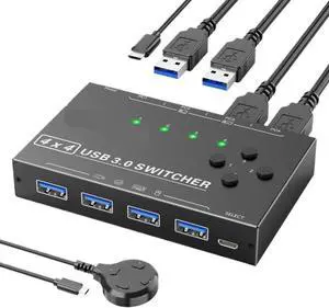 USB 3.0 Switch Hub Selector 2 PCs Sharing 4 Devices for Keyboard Mouse Printer