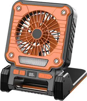 Portable USB Fan With 10000mAh Battery, Adjustable Speed Control, Timer, Dual LED Lighting, Power Bank Function For Mobile Devices, Designed For Outdoor Activities(Orange)