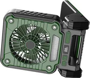 Camping Fan with LED Light, Cordless Portable Rechargeable Desk Tent USB Fan with Remote Hook, Head Rotation, Stepless Speed, for Home Outdoor Office Travel Fishing,Green