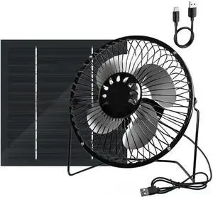 Solar Panel Fan 10W 8 Inch Portable Outdoor Ventilation Power Bank Solution With 360 Degree Rotation Type-C Charging Cable