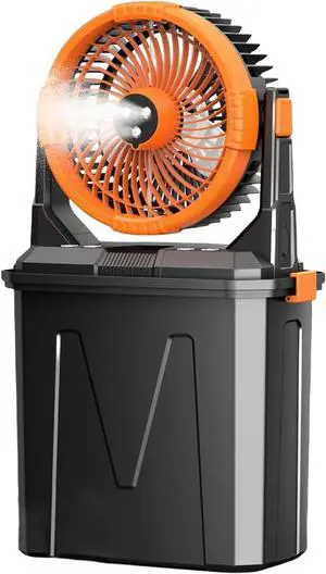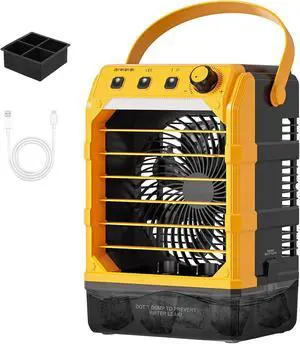 Portable Fan With Mist Compatible for Dewalt 20v Battery/USB (No Battery & Charger), Camping Fans with 1600ml Water Tank, Timer, LED & Ice Cube Tray, Misting Fan For Outside Room Desk