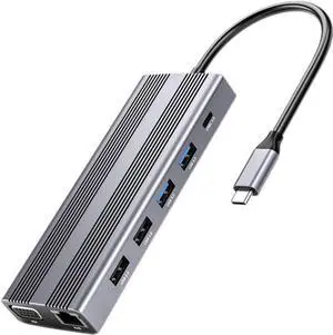 4K 30Hz Output 100W Power Supply High Speed Data Port RJ45 100/10Mbps Adapter Small USB C Extension for Laptop