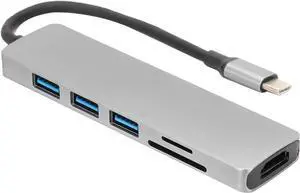 6 in 1 Type C to HD Multimedia Interface Hub Adapter, USB 30. Converter with 4K Resolution, Aluminum Alloy Type C Hub for, Includes USB 30. Ports SD TF Card Reader