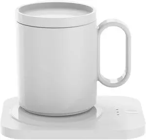 2 in 1 Coffee Mug Warmer and Wire Less Charger, with Cup and Lid 55 / 131 Intelligent Constant Temperature 10.5oz Food Grade Double Layer 304 Stainless Steel Beverage Cup (White)