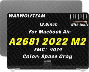 WARWOLFTEAM Compatible with MacBook Air A2681 2022 M2 EMC 4074 MLXW3LL/A MLY33LL/A LCD LED Screen Replacement Cover Cable Hinges Full Top Complete Assembly 13.6in 2560 x 1664 (Space Gray)