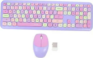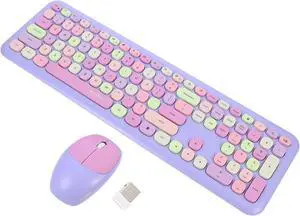 NUOBESTY Keyboard Mouse Set USB Receiver Range Purple Mixed Color Compact Laptop Controller for Office Study