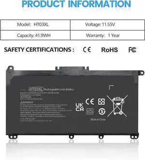 HT03XL TF03XL Batería de Repuesto para computadora portátil Compatible for HP 14-CE 14-CF 14-CK 14-DF 14-DH 14-MA 14-cm 14Q-CS 15-CS 15-DA 15-DB 17-by 17-CA 240 245 250 255 G7 340 348 G5 L11119-855