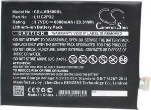Replacement Battery for A7600, IdeaPad A10-70, A7600-F, S6000F, S6000H, S6000L, B6000F, S600H PN: L11C2P32 6300mAh / 23.31Wh