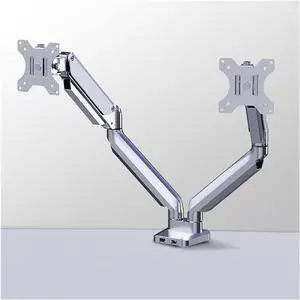 Monitor Mount Monitor Mounting Bracket Air Spring Monitor Arm Desk Mount Fully Adjustable Fits 13-32 Inch Monitors, Supports Table Clip and Perforated Mounts Adjustable Monitor St,Silver,Daul