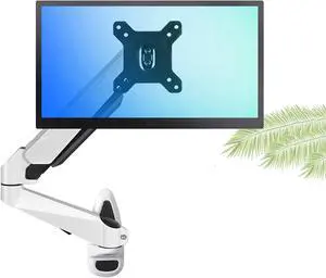 Monitor Arm 10-32 Inch Screens Within 19.8 lbs, Single Monitor Wall Mount Full Motion Gas Spring Arm with VESA, White Monitor Mount