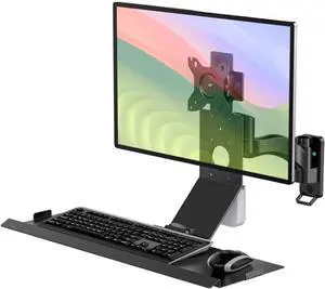 Monitor and Keyboard Wall Mount, Stand/sit Workstation, with Pneumatic Arm, Load 10kg, with 210 * 600mm Foldable Keyboard Tray, for 15-32 Inch Single Screen(Black)