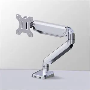 Monitor Riser for Desk Single Monitor Arm, Gas Spring Single Monitor Mount up to 32" and 19.8 lbs, Adjustable Aluminum Monitor Arm Desk Mount with Grommet Base Monitor StSilver