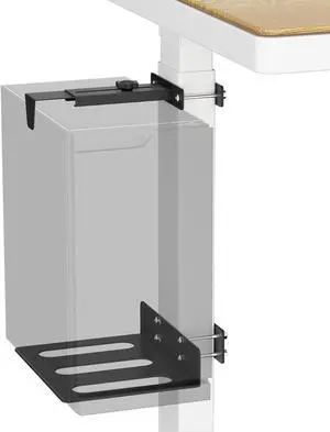 Under Desk PC Mount for Standing Desk, Universal Clamp-On PC Desk Mount with 10PCS Adhesive Cable Clip, No Drilling Heavy Duty Adjustable Computer Case CPU Holder Fits Most Towers, Holds Up to 44Lbs
