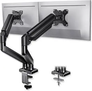Dual Monitor Arm Desk Mount Adjustable Gas Spring Monitor Stand for 1334 Screens, Full Motion Swivel, Tilt & Rotation, Heavy Duty VESA Mount for Gaming, Programming, and Office Setup