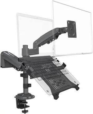 SHOPPINGALL Dual Gas Spring 2 in1 Monitor & Laptop OR Double Monitors Mount Stand with 2 Swing Arms for 15"-32" Monitors, Both Desk Clamp and Grommet Mounting Options in The Box - SA-LH08-Black
