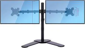 Multifunctional Dual Monitor Desk Stand, Free-Standing Monitor Mount for 2 Screens up to 27 Inch, Fully Adjustable Dual Monitor Stand with Max VESA 100x100mm Easy Installation
