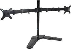 Universal TV Stand Dual Monitor Desk Stand, Freestanding Height Adjustable Two Arm Monitor Mount, Fits 13 to 27 Inch Computer Screen, Holds 2 Screens