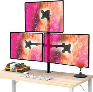 Universal TV Stand Monitor Mount, Ergonomic Monitor Arm for 3 Monitors, Heavy Duty Fully Adjustable, for 13 to 27 Inch Computer Screens, Each Arm Holds 22lbs/10kg
