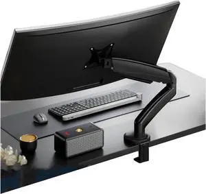 Monitor arm Dual Stand,Monitor Arm Black Single Monitor Bracket, Freestanding DesktopMonitor arm Dual Stand,with Sleek Glass Base, Adjustable Monitor Arm for 14-27" ScreensHolds up to 22lbs Monitor