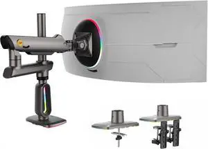 NB Extra Height Gaming Monitor Arm for 32 to 60 Inches Screen, Load up to 20 kg, VESA 75/100, RGB-Light, Heavy Duty, Multi Angle Adjustable, Premium Aluminum, Long Arm Extension Grey Black