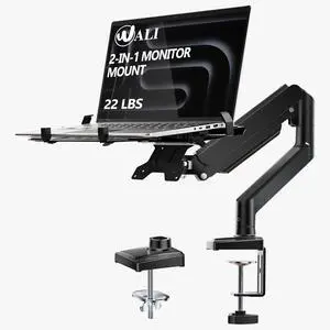 WALI Laptop Desk Mount, 2-in-1 Monitor Mount Fits up to 17 Notebook and 34 Monitors, Laptop Stand for Desk Adjustable Height, Monitor Arm with Laptops Holder, Max Holds 22-26.4lbs(GSMP001LPN), Black