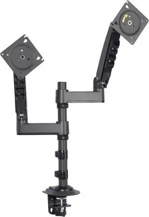 15"-32" Dual Mount Column Type Full Motion Monitor Arm Mount Height Adjustable with Clamp, Grommet Mounting Base Monitor Desk-Grey