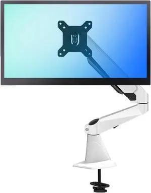 Work Single Monitor Mount, Gas Spring Arm Desk with Clamp, Fully Adjustable Fits 15-27 inch Screens, Holds up to 17.6 lbs Play(White)