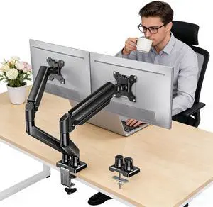 Dual Monitor Stand for 17-32 Inch Screen, Gas Spring Monitor Stand, Double Screen Arm Support VESA 75 & 100 mm, Each Arm Holds Max 22lbs, HeightAdjustable/Tilt/Swivel/Rotate, for Home Office
