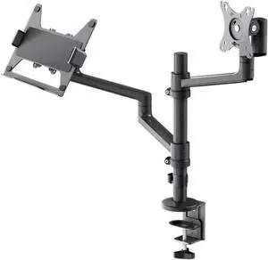 Monitor Desktop Mounting Bracket Monitor and Laptop Mount 2-in-1 Adjustable Dual Arm Desk Mounts Column Type Dual Monitor Stand Arm, VESA Mount 75/100mm with C Clamp Monitor Arm Computer Monitor Stand