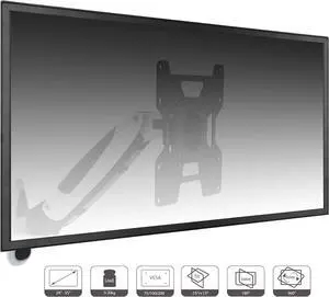 Work Single Monitor Wall Mount Fits Most 15-27" LCD, Adjustable Steel Tilt & Rotate, VESA 75x75/100x100 mm, Holds up to 29.98lbs Play