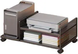 Adjustable Monitor Stand CPU Stand Printer Shelf Desktop Case Mobile Cart Holder with Locking Caster Wheels Multifunctional Storage Rack Arm Monitor(Black) (Black),Black