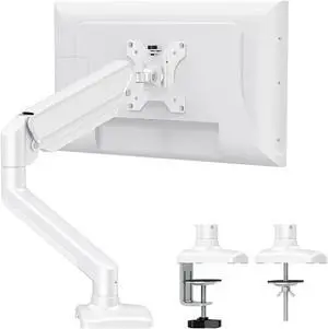 Monitor Stand, Adjustable Monitor Arm Stand with Desk Clamp - Height, Tilt, and Rotation Adjustable - Space Saving & Stable Mount for All MonitorsWhite