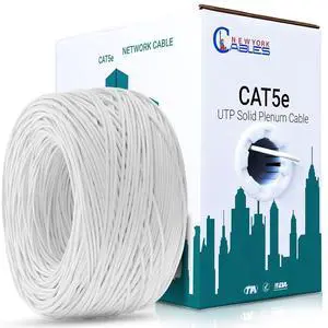 Newyork Cables - Cat5e Riser Cable (CMR) Solid Conductors Cat 5e Ethernet Cable 1000ft - 24 AWG, 350MHz, UTP Premium Easy Pull Box Cat5e Cable 1000ft - High Speed