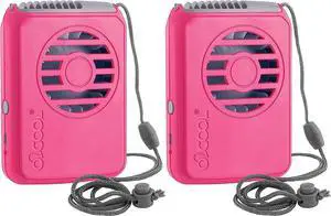 O2COOL Rechargeable Necklace Fan - Portable Hanging Neck Fan with Adjustable Lanyard - 3 Speed Vertical Air Flow Micro USB Charging Cable Included (Raspberry, 2)